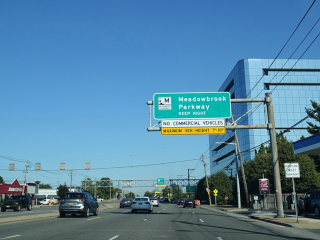 Old Country Road is a major east/west route in the eastern half of Nassau. In Garden City Park, southbound Herricks Road (CR 8) curves to the east and becomes eastbound Old Country Road. At this point, there is an "exit" for Rockaway Avenue. (This "exit" is an intersection with a traffic light at which there are ramps connecting southbound Herricks Road to southbound Rockaway Avenue and northbound Rockaway Avenue to eastbound Old Country Road.) Old Country Road runs east through Mineola. Between Glen Cove Road (CR 1) and Merrick Avenue (CR 4), it serves as the main road in a large commercial development that includes the Roosevelt Field Shopping Mall. It runs east through Hicksville and Plainview and ends at Round Swamp Road (CR 110) in Plainview near the Nassau-Suffolk county line.