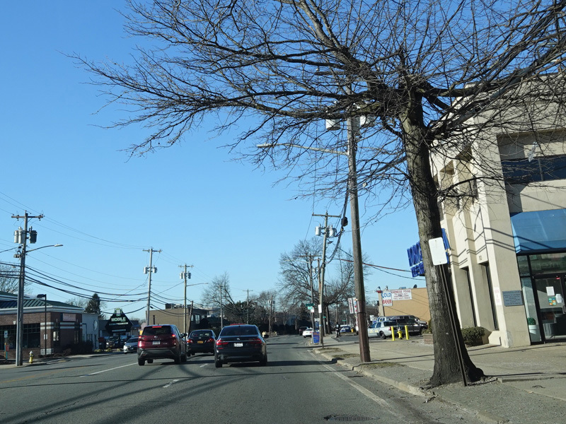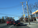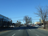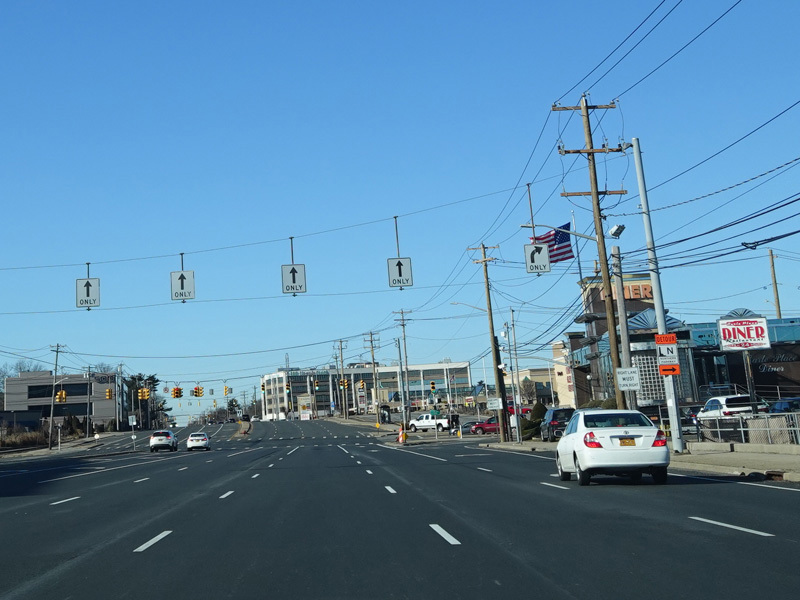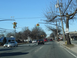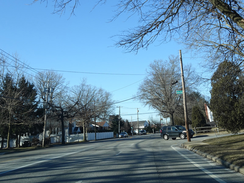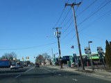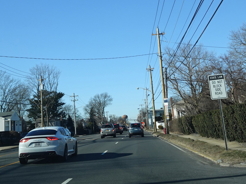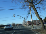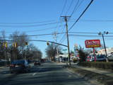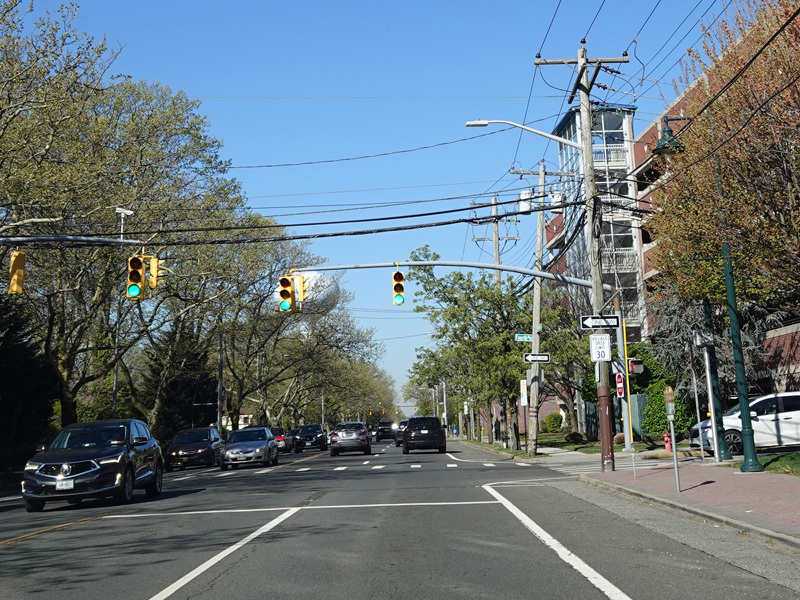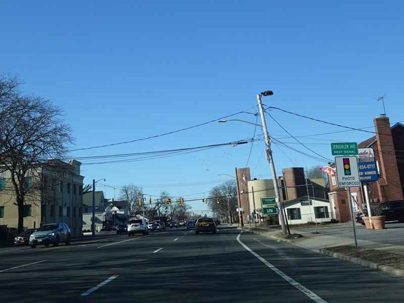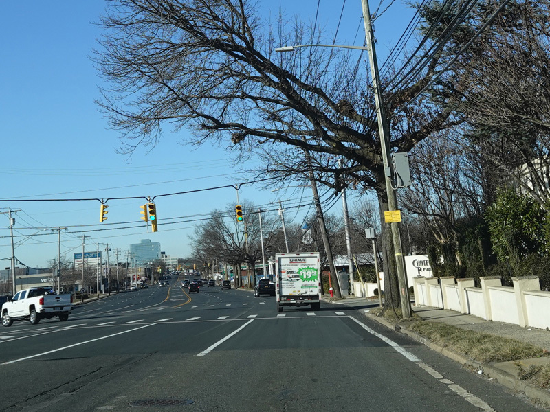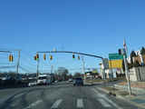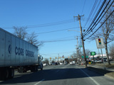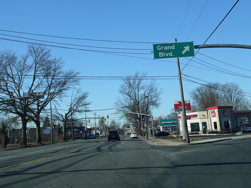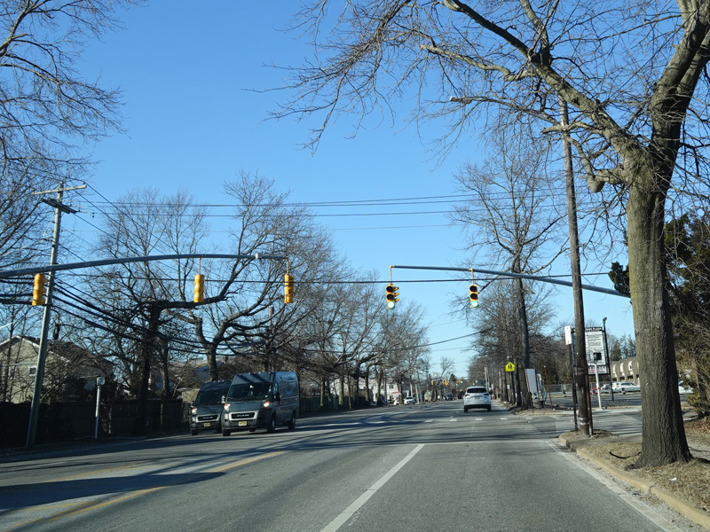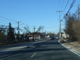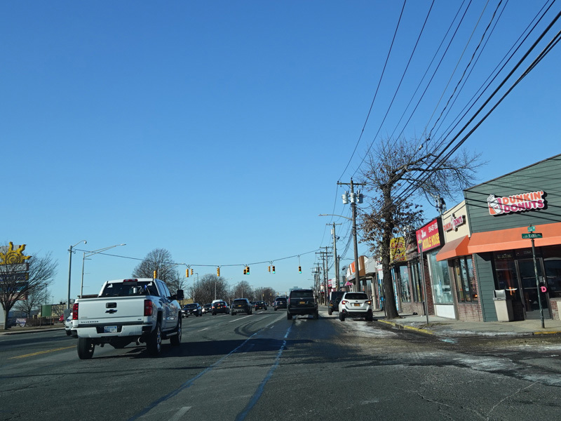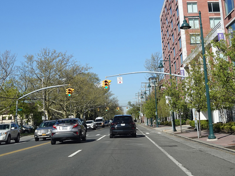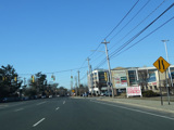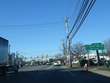 Old Country Road runs west through Hicksville. Levittown Parkways begins on the left at a traffic light along this stretch.