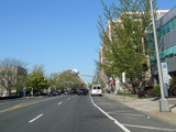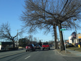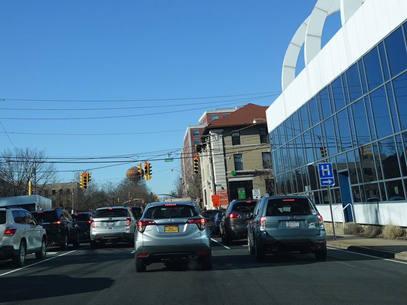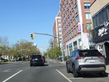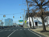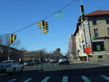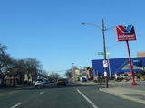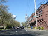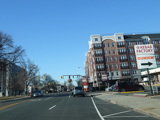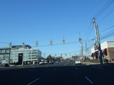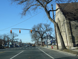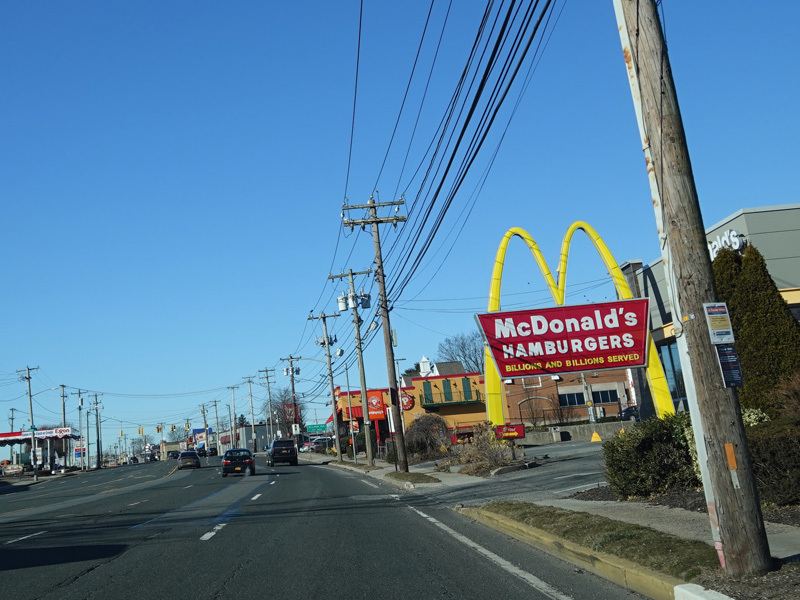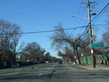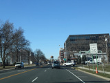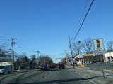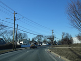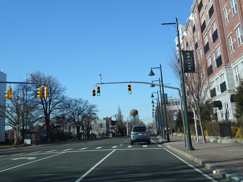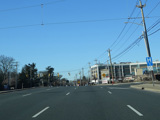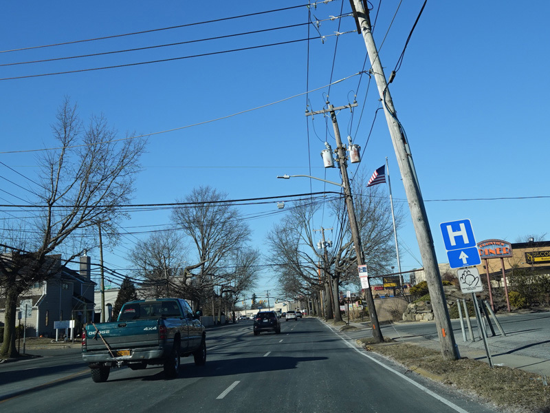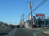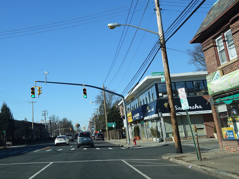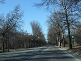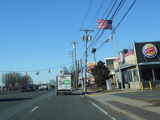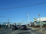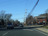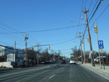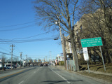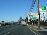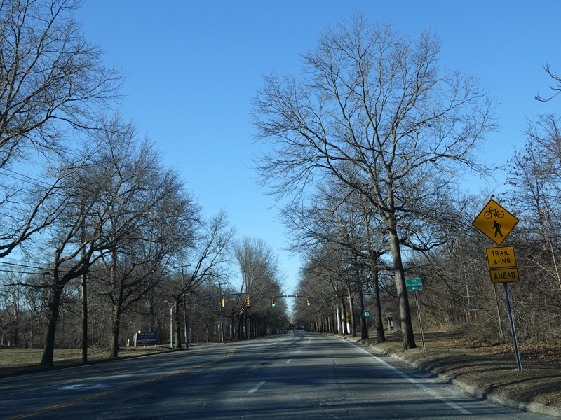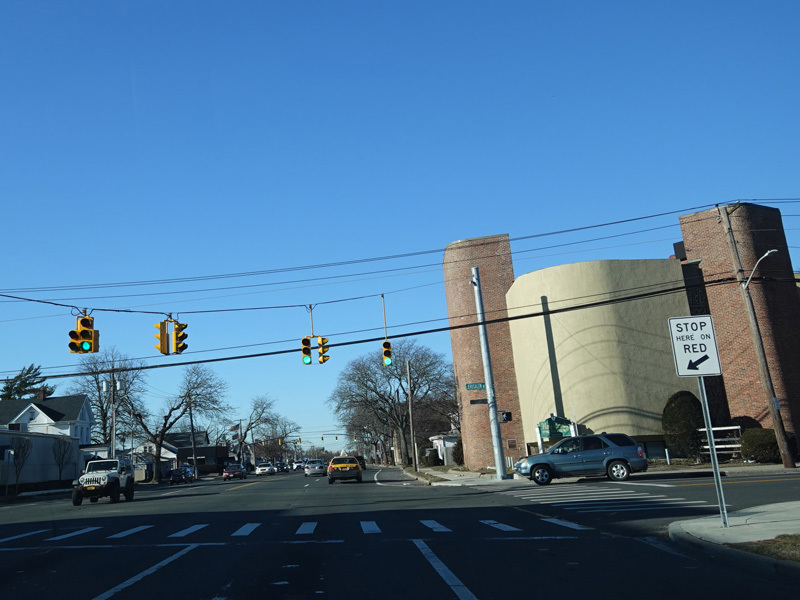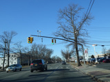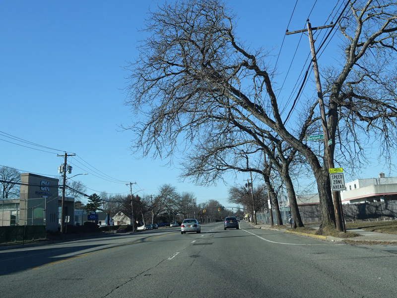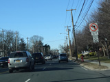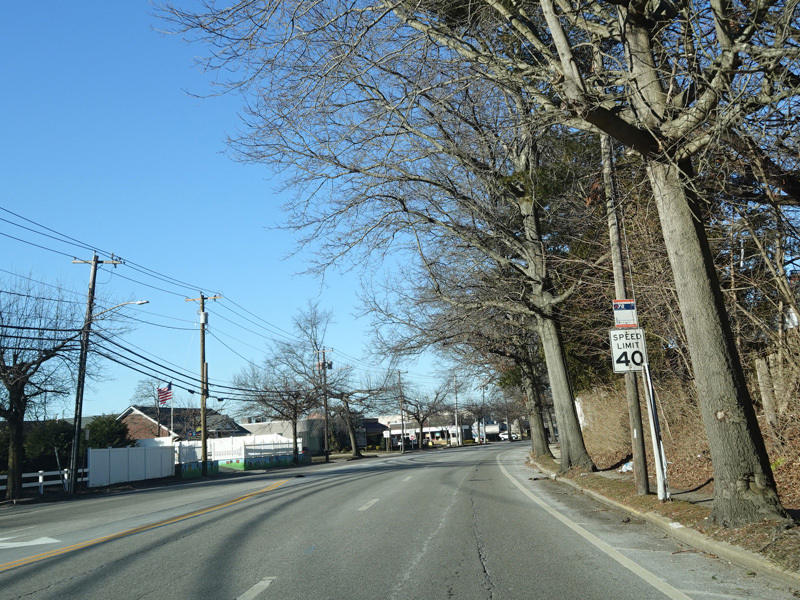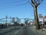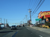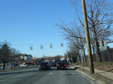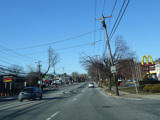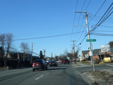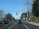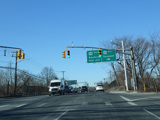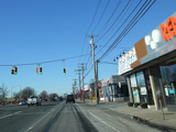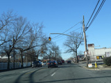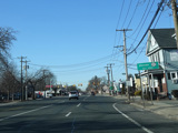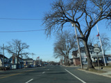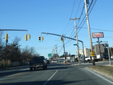 Old Country Road runs west through Hicksville. Levittown Parkways begins on the left at a traffic light along this stretch.
