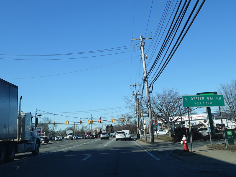 There is a traffic light at South Oyster Bay Road (CR 9). Turn right to go north or left to go south.