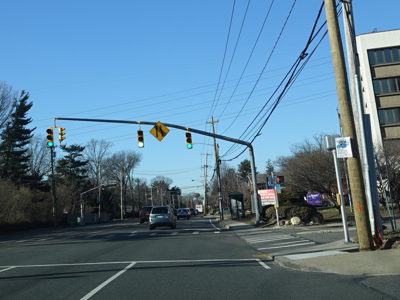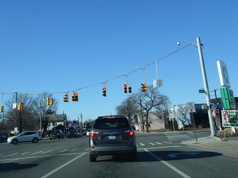Turn left at this traffic light to enter the Roosevelt Field shopping mall.