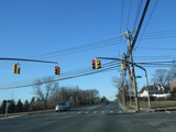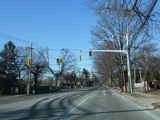 There is a traffic light at CR 7A. Turn right onto Roslyn Road to go north or left onto Washington Avenue to go south.