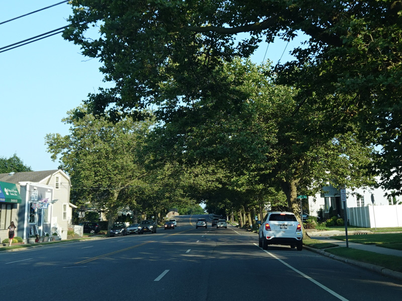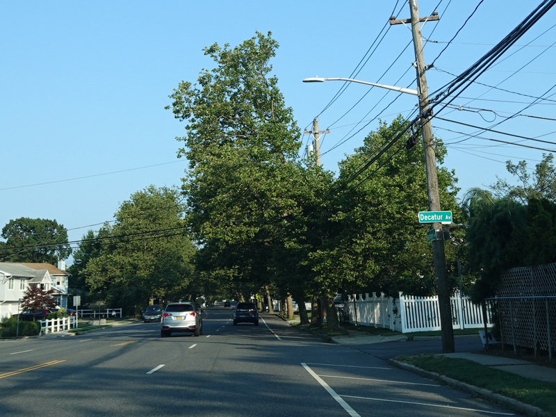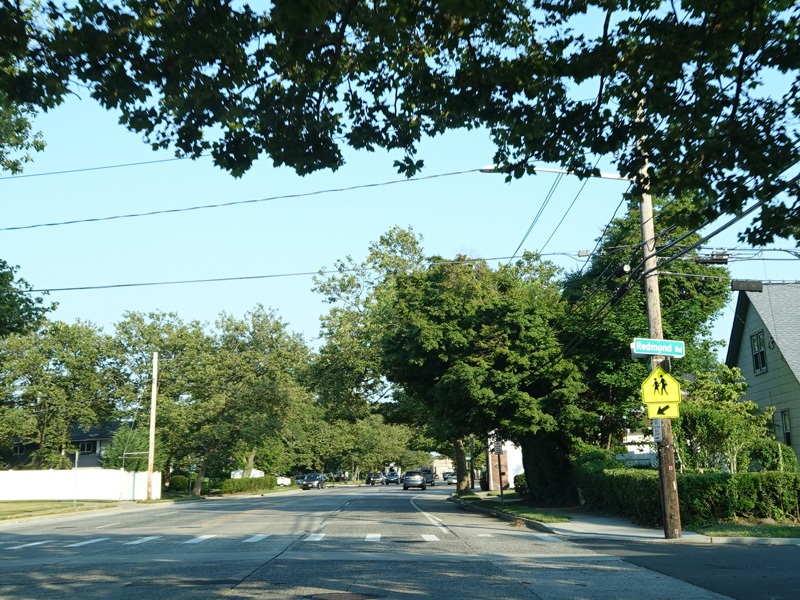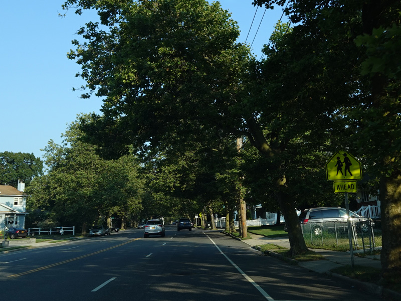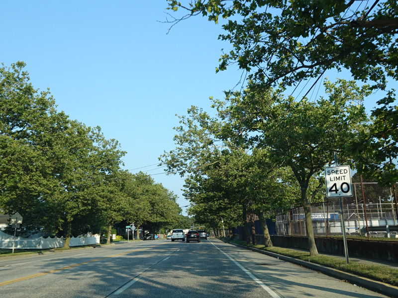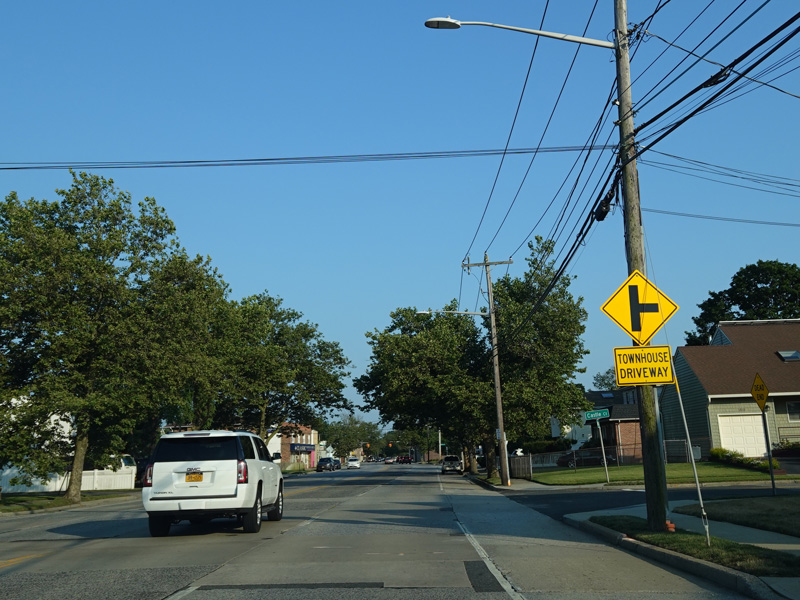 Bellmore Avenue narrows down to two lanes. There is a stop sign at Marle Place, a rare find for a county route in Nassau County.