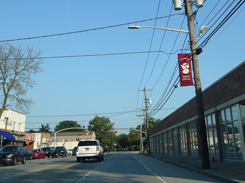 Bellmore Avenue begins at Merrick Avenue (CR 4) in East Meadow and runs southeast as a four-lane undivided road.