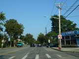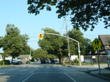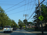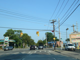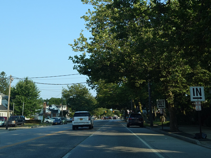 There is a traffic light at Sunrise Highway (NY 27). Turn left to go east or right to go west.