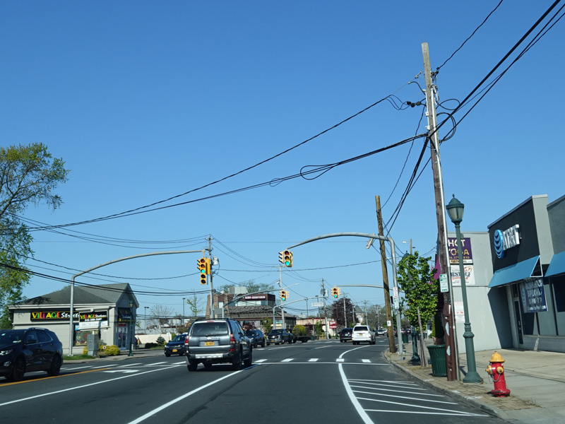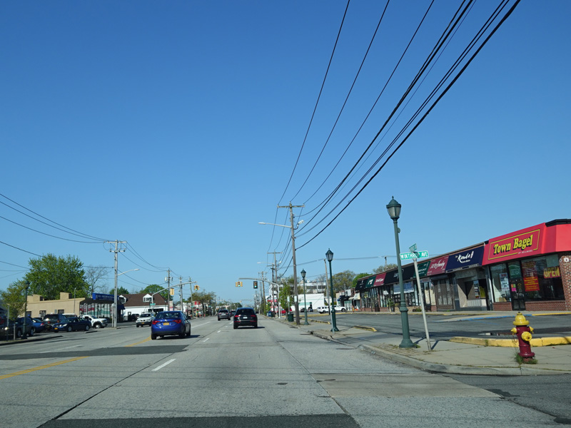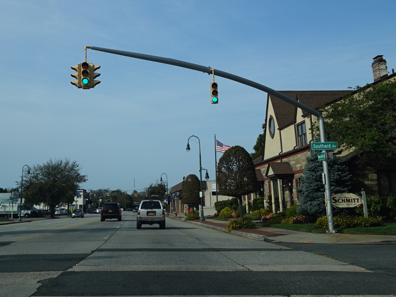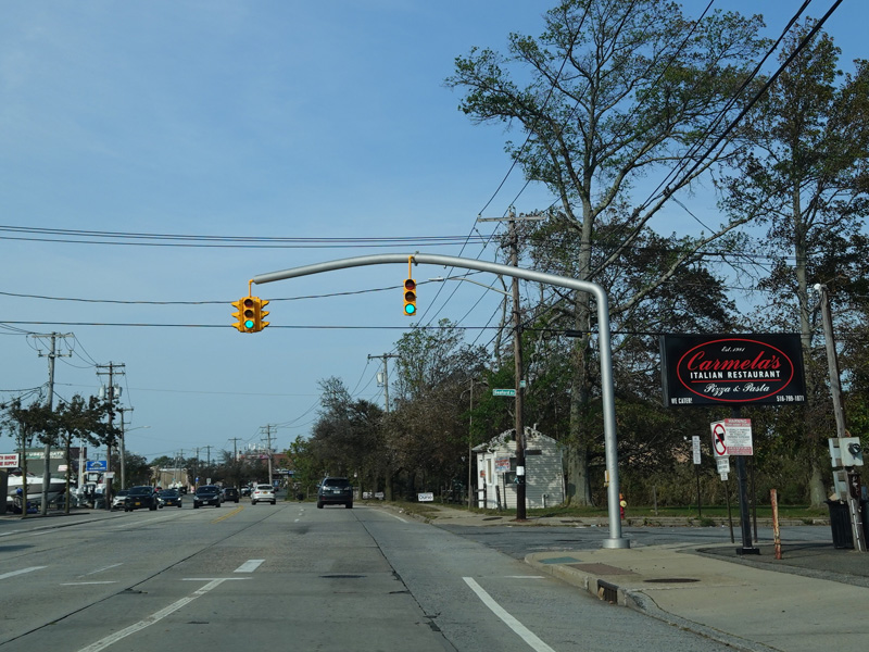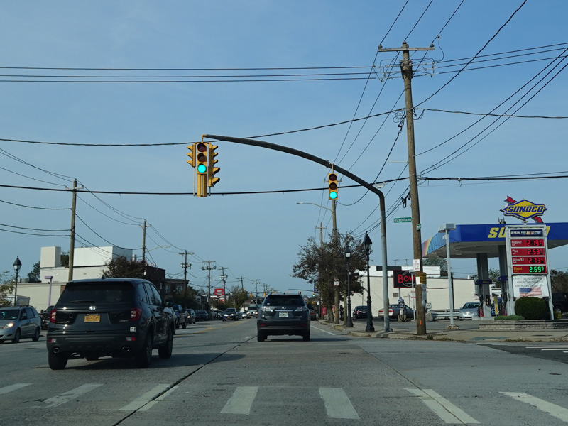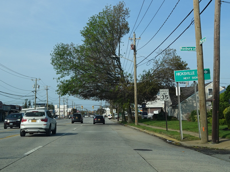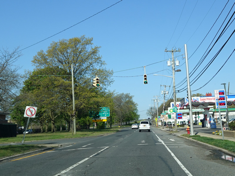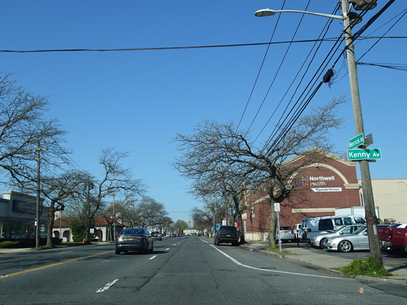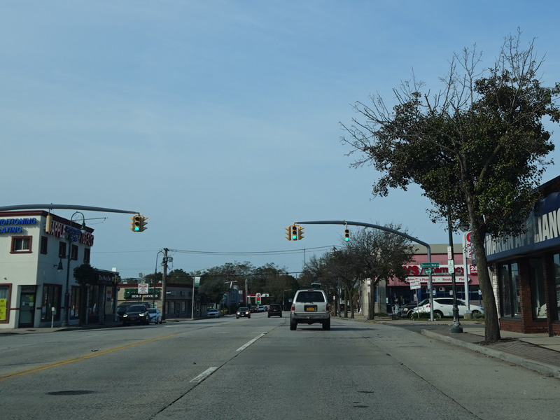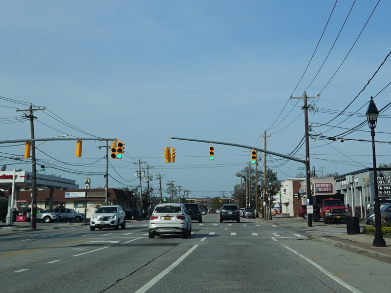 Hicksville Road (NY 107) begins here at Merrick Road. Turn right at the traffic light to go north.