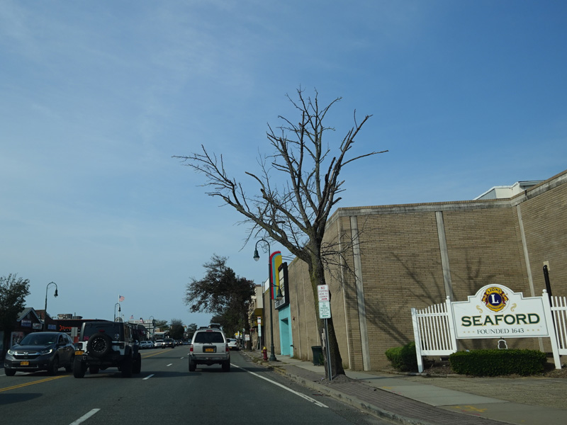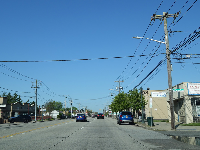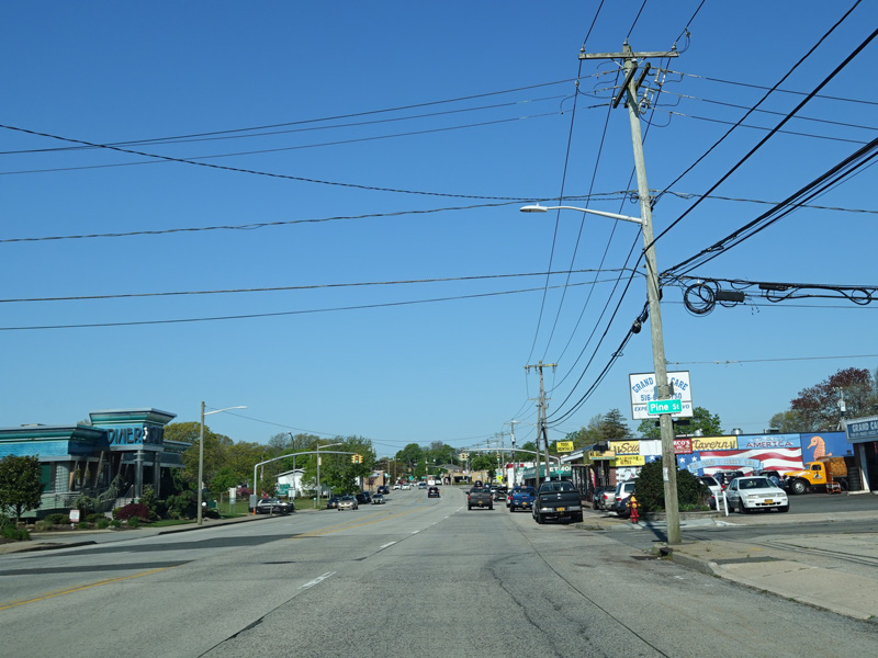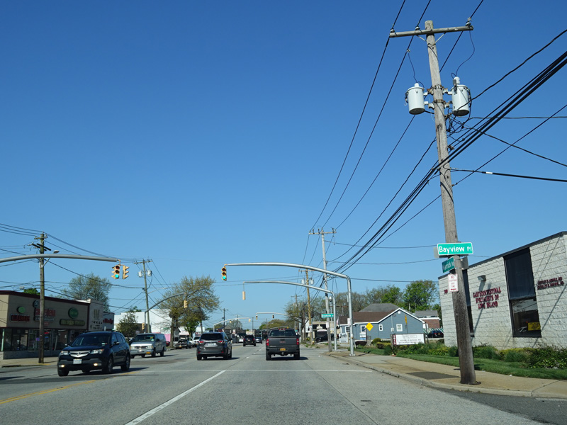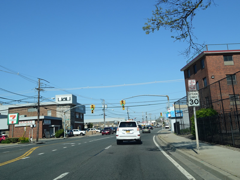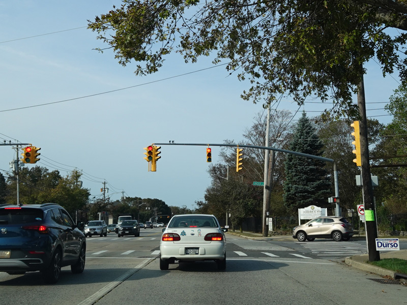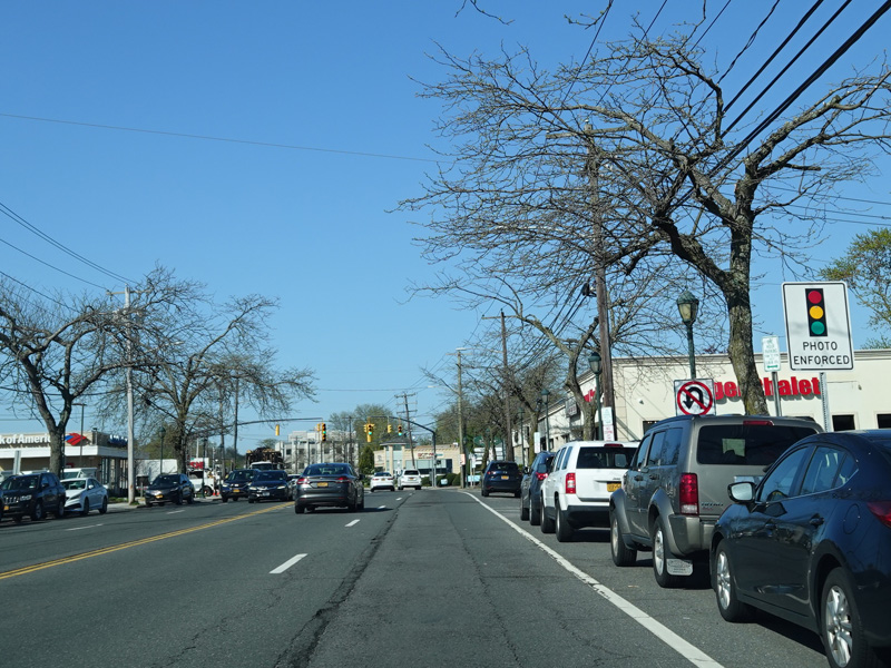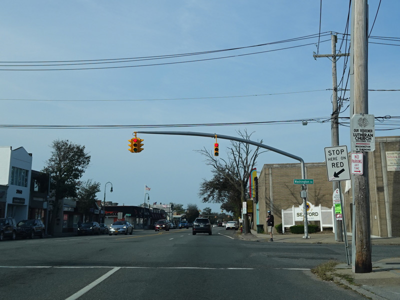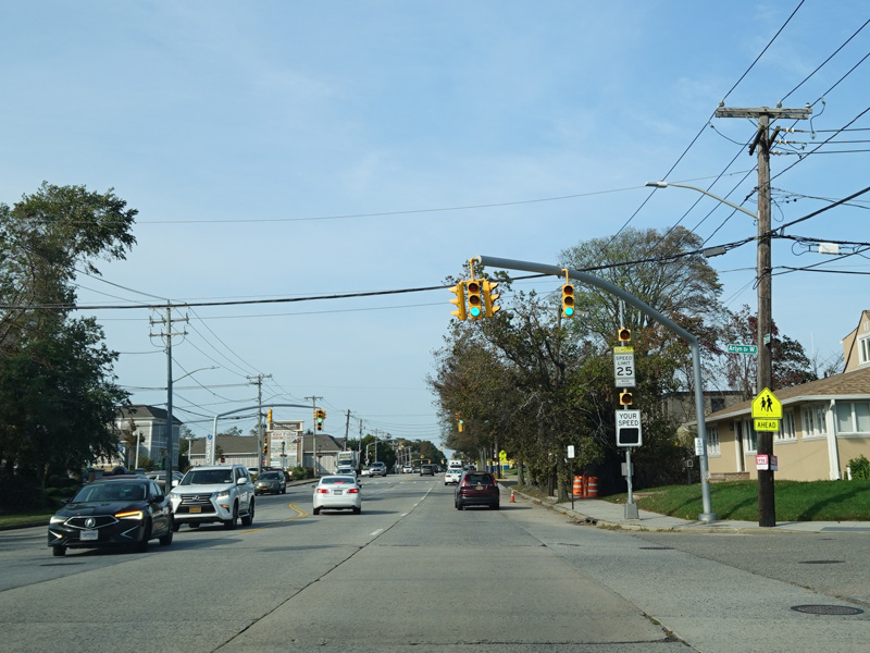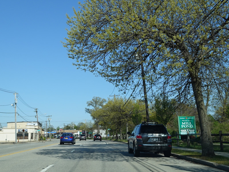 Hicksville Road (NY 107) begins here at Merrick Road. Turn right at the traffic light to go north.