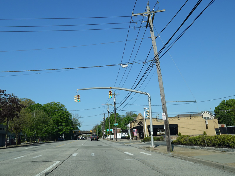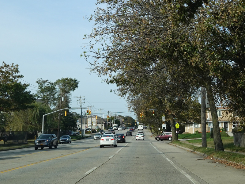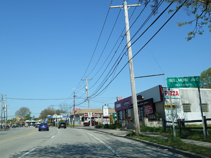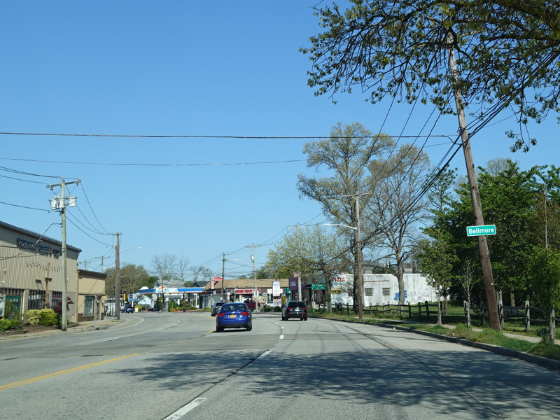 Merrick Road runs west through Bellmore and Merrick. There are traffic lights at Bellmore Avenue (CR 26), Newbridge Road, Merrick Avenue (CR 4), and Babylon Turnpike. Newbridge Road is an unnumbered county route here, but it becomes NY 106 further north.