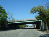 Merrick Road becomes a divided road with a grass median. There is an interchange with the Meadowbrook Parkway.