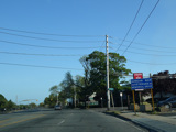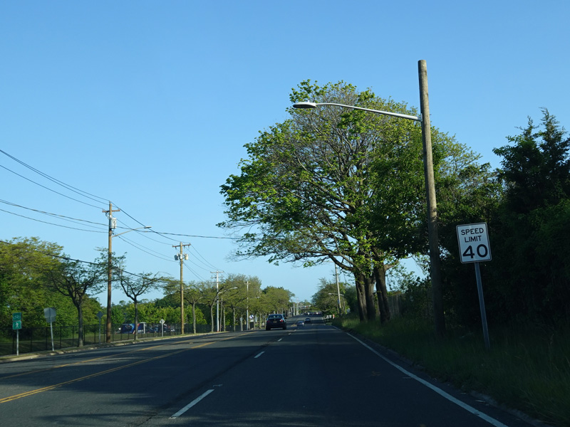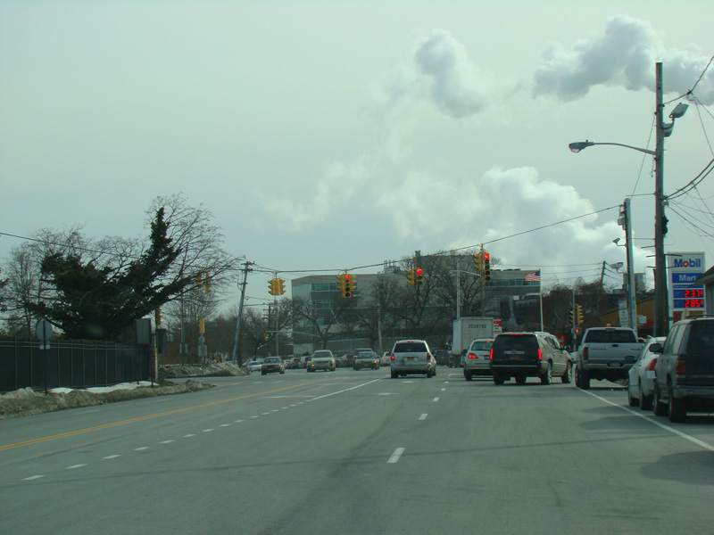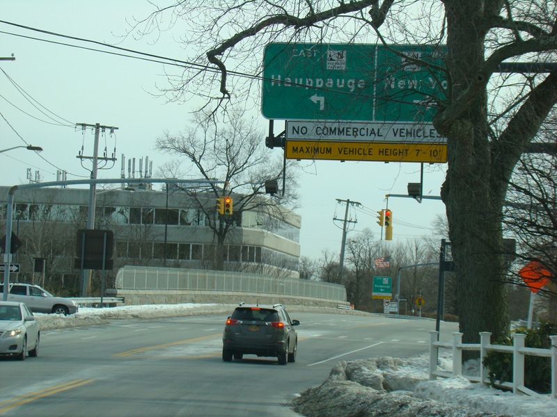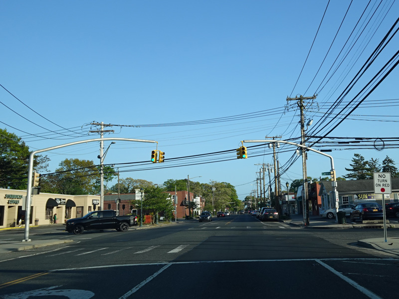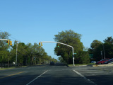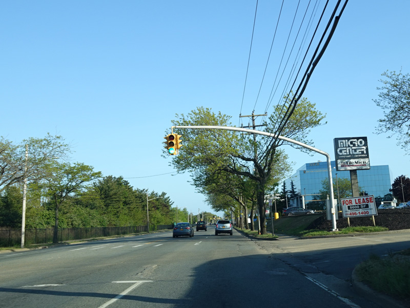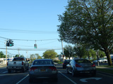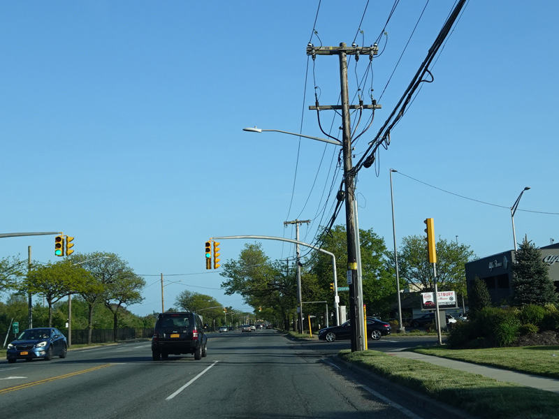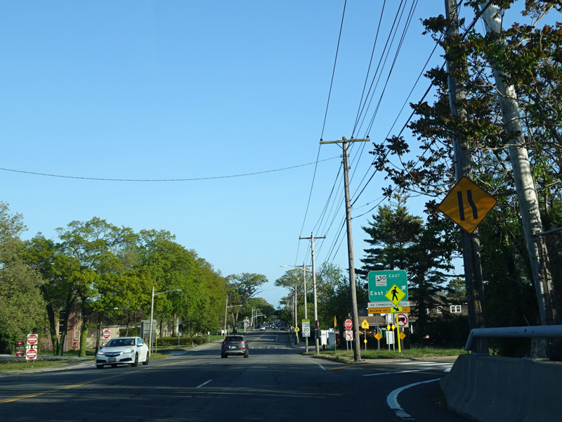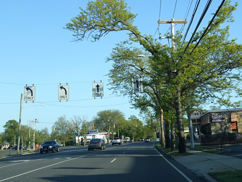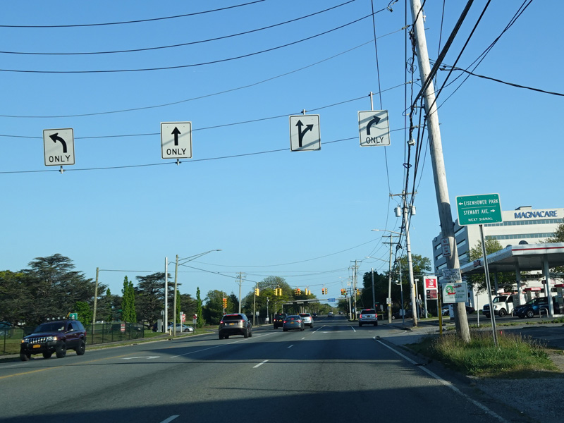 There is a traffic light at Hempstead Turnpike (NY 24). Turn left to go east or right to go west.