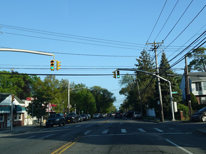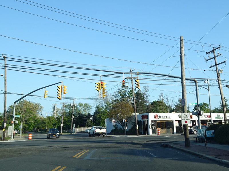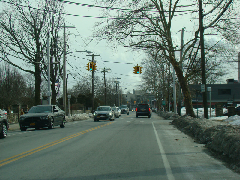 Post Road intersects Jericho Turnpike (NY 25) at a traffic light.