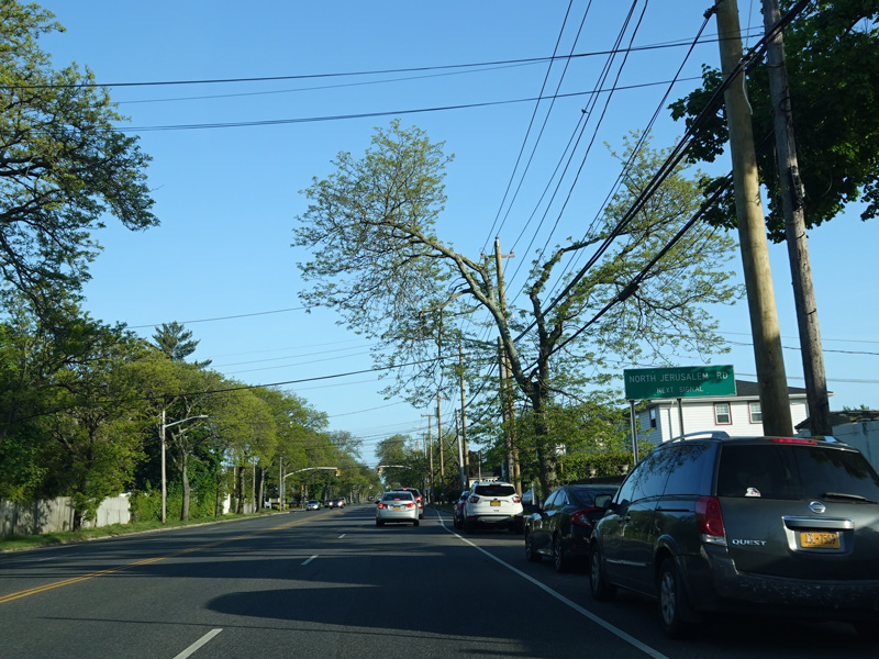 There is a traffic light Jerusalem Avenue (CR 105). Turn left to go east or right to go west.