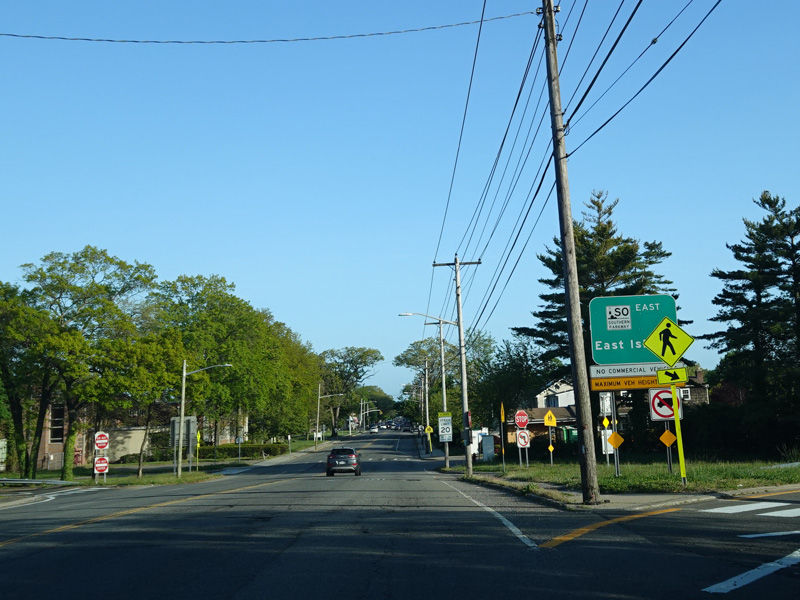 Post Avenue runs south through Westbury. Due to a low railroad overpass, all tall vehicles must turn off at either Maple Avenue or Union Avenue (CR 63).