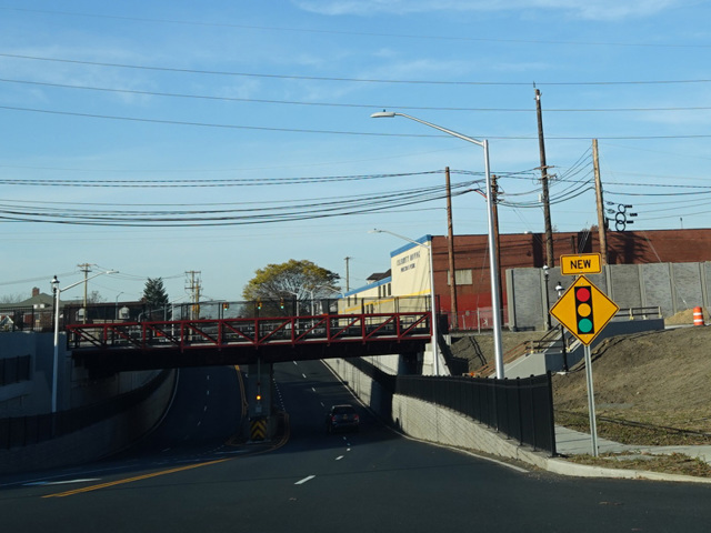 New Hyde Park Road is a north/south route in western Nassau. When Franklin Avenue crosses Hempstead Turnpike (NY 24) in Franklin Square, it becomes New Hyde Park Road and takes on the CR 5B designation. New Hyde Park Road runs north through Franklin Square, Stewart Manor, New Hyde Park, and Lake Success. It ends at the Long Island Expressway (I-495). The entire length is an undivided road with traffic lights.