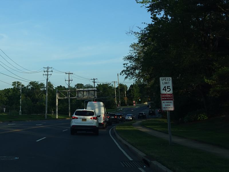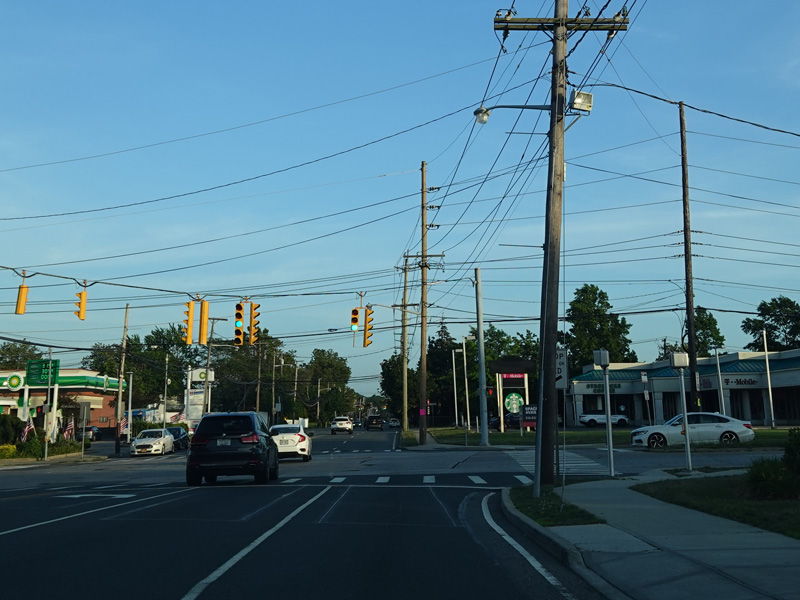 There is a traffic light at Stewart Avenue (CR 177). Turn left to go east or right to go west.