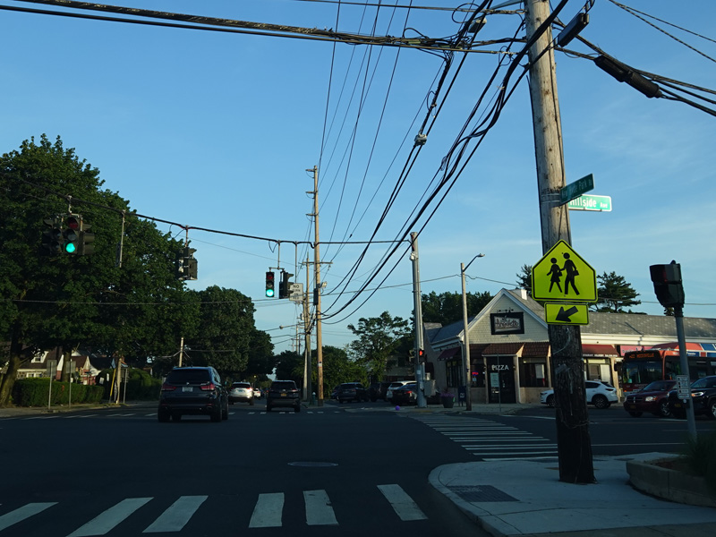 There is a traffic light at Hillside Avenue (NY 25B). Turn left to go east or right to go west.
