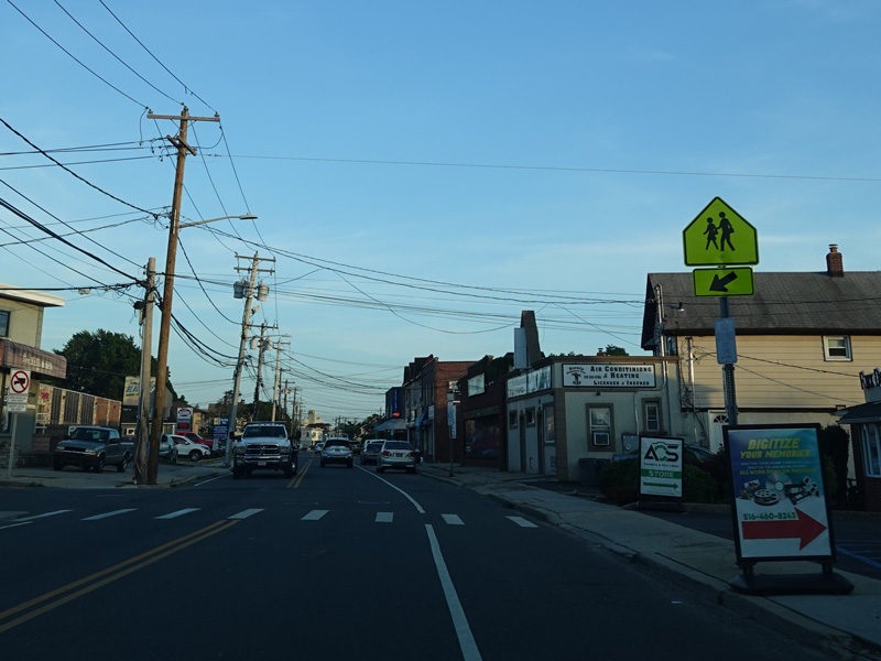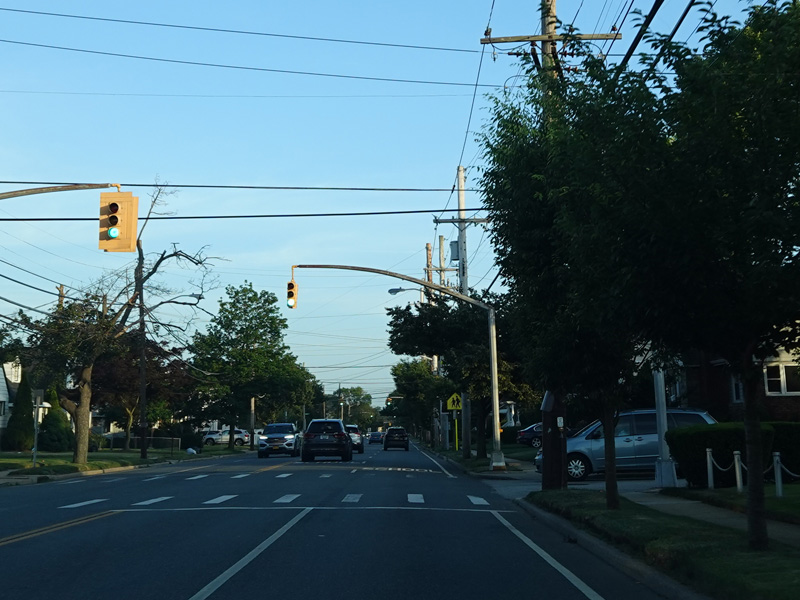 New Hyde Park Road continues south through Garden City. After a short distance, it narrows down to two lanes.