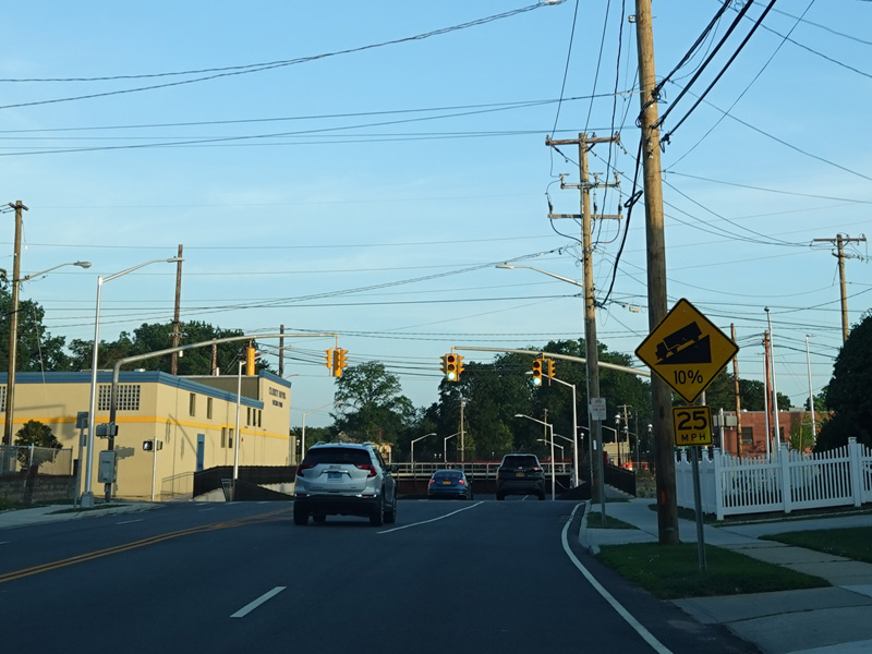 There is a railroad grade crossing at the Hempstead Branch of the Long Island Rail Road.