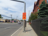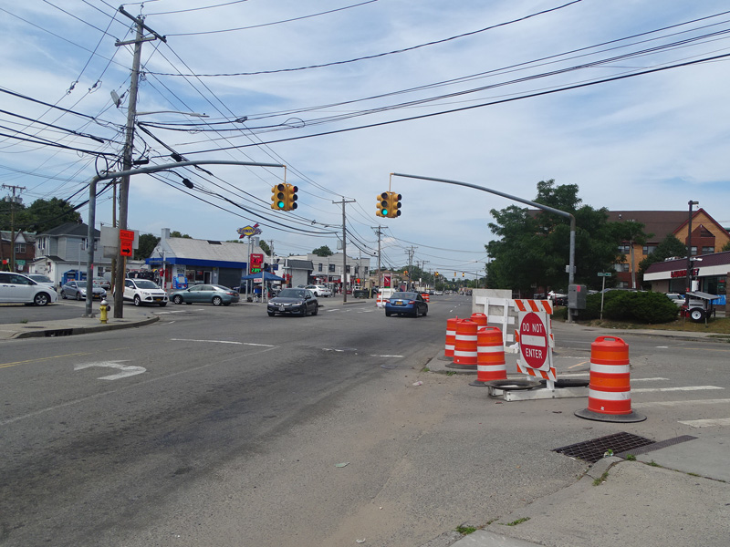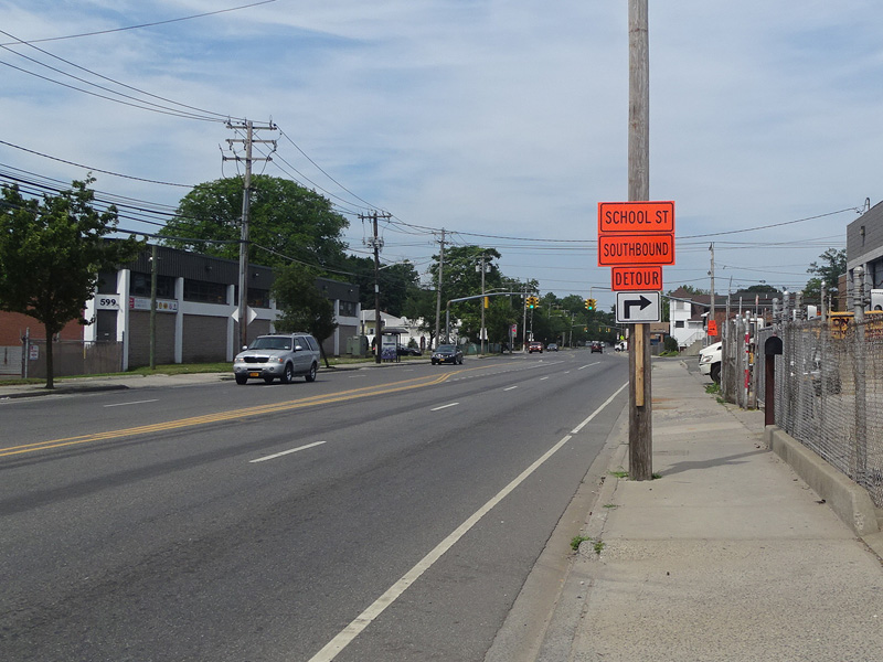 These signs were found on Union Avenue in Westbury while School Street was closed for construction work to eliminate the grade crossing at the Main Line of the Long Island Rail Road. Motorists who would normally be using School Street were detoured through Grand Boulevard.