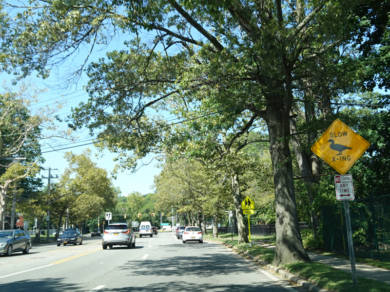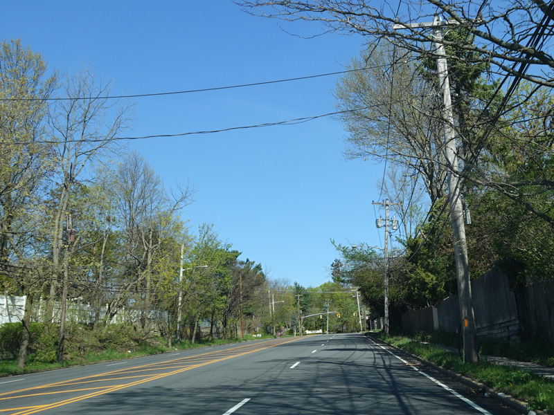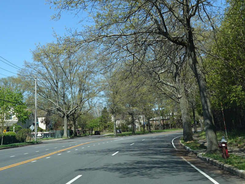 Shelter Rock Road runs west for a short distance and then curves to the north.