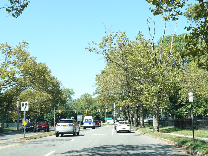 There is a traffic light at Hillside Avenue (NY 25B). Turn right to go east or left to go west.