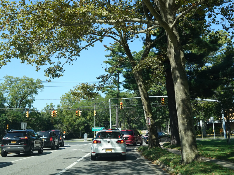 There is a traffic light at Jericho Turnpike (NY 25). Turn right to go east or left to go west.