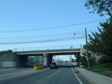 Herricks Road begins by passing under the railroad tracks and then runs north through Garden City Park.