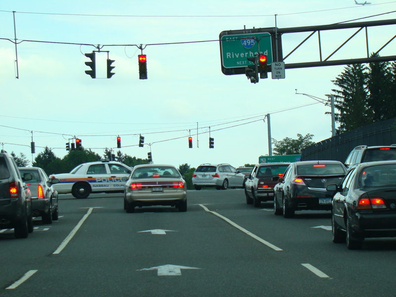 These pictures show Herricks Road at Jericho Turnpike (NY 25) as it appeared in 2006. In the time since, the overhead lane usage signs have been removed, the route sign has been replaced with one that includes compass directions, and the traffic light has been replaced.