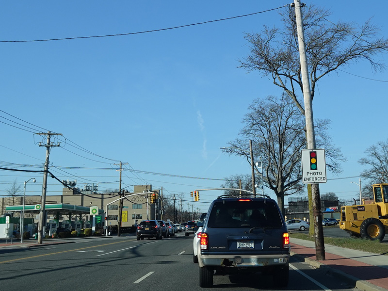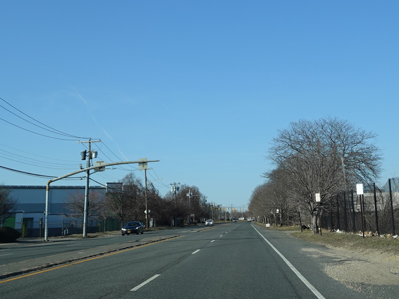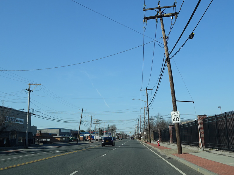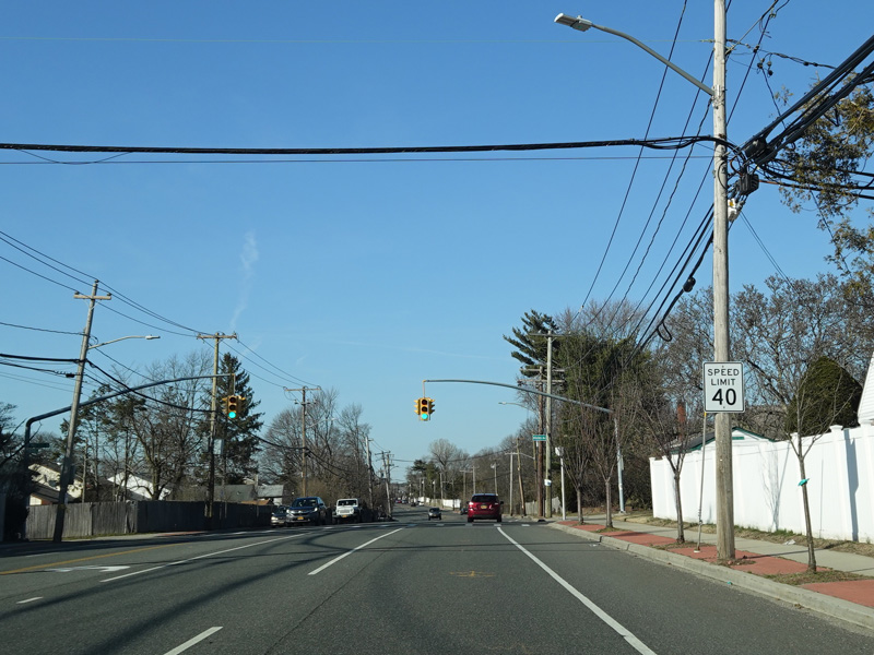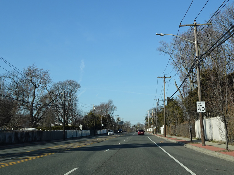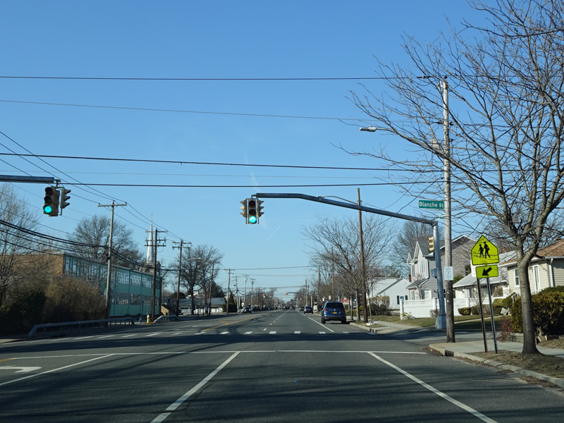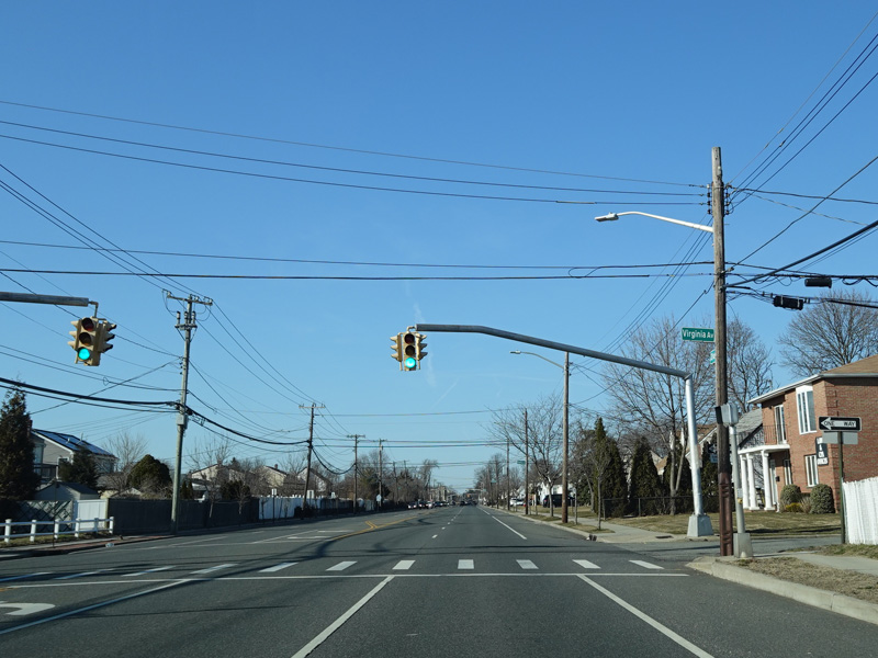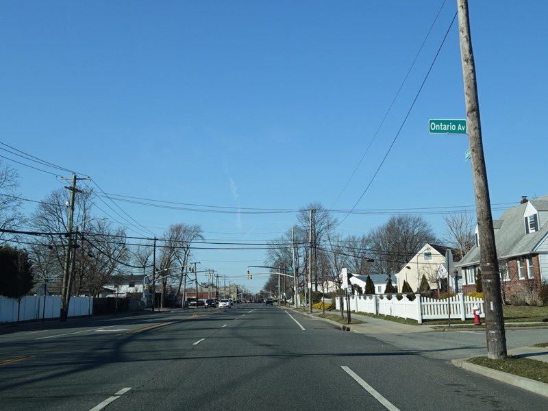 South Oyster Bay Road begins at Hicksville Road (NY 107) in Bethpage and runs north as a four-lane undivided road.
