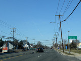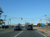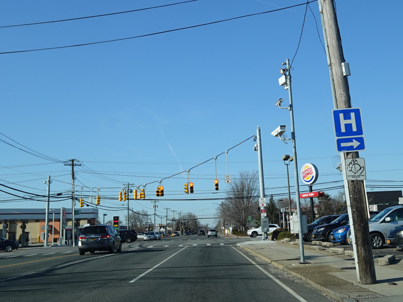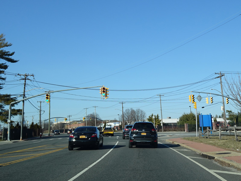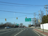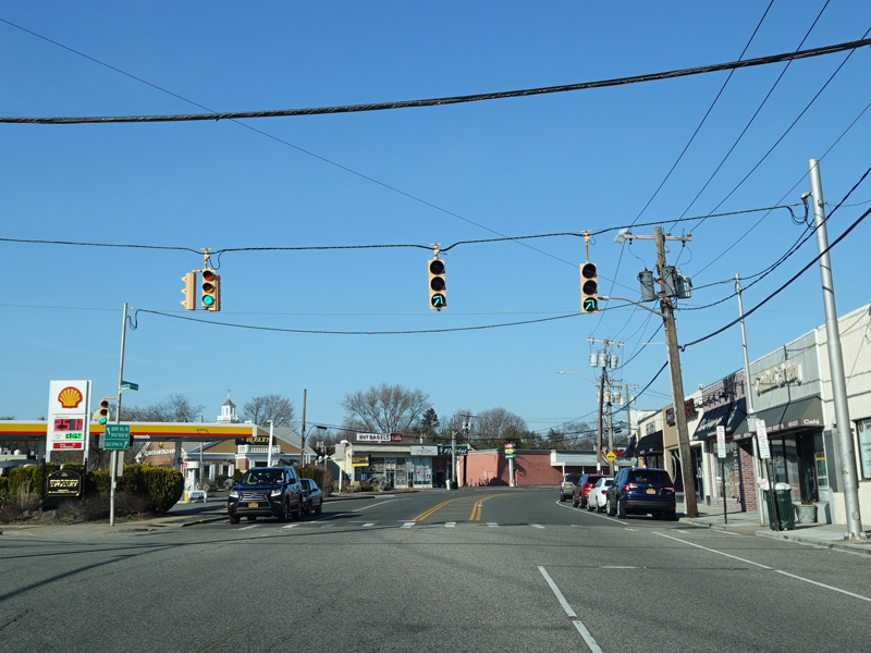 There is a traffic light at Old Country Road (CR 25). Turn right to go east or left to go west.