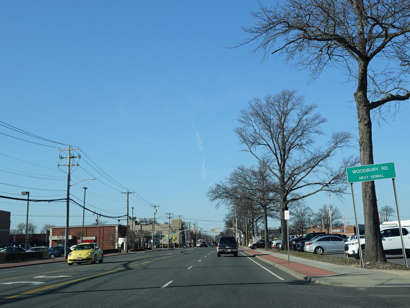 There is a traffic light at Woodbury Road (CR 12). Turn right to go east or left to go west.