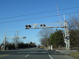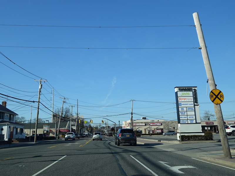 There is a railroad crossing at the Huntington Branch of the Long Island Rail Road.