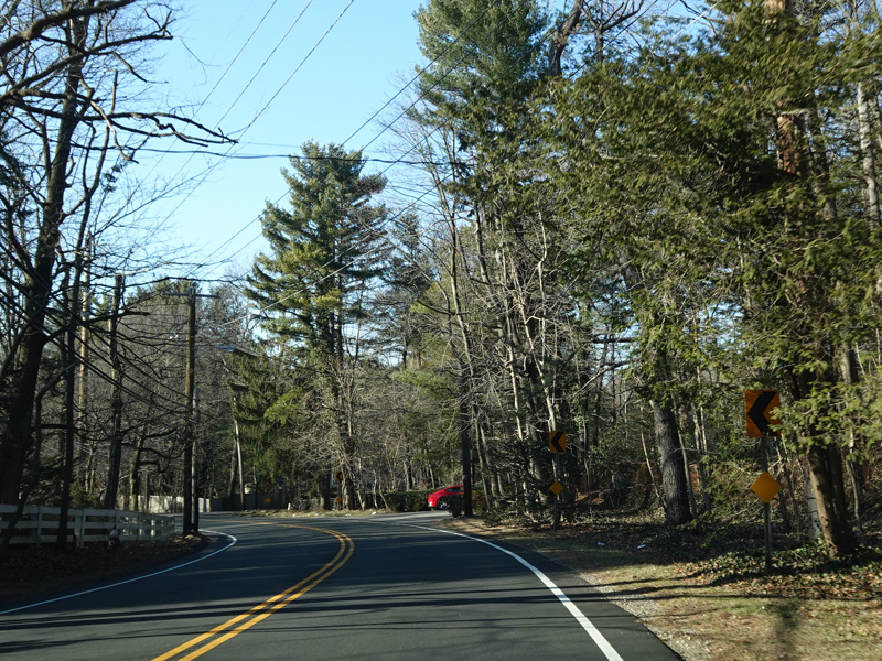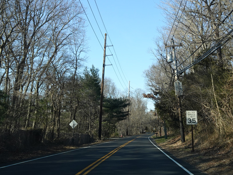 Jackson Avenue ends at a traffic light. Bear right onto Berry Hill Road to stay on CR 9. Bear left for Split Rock Road. Turn left for Muttontown Road.