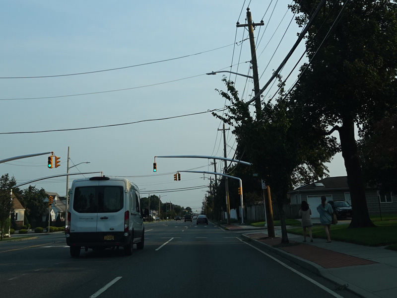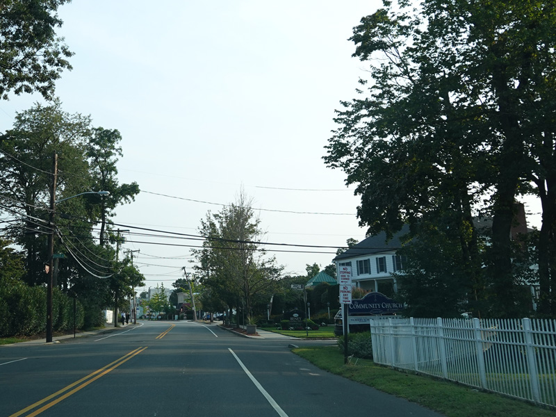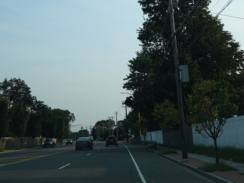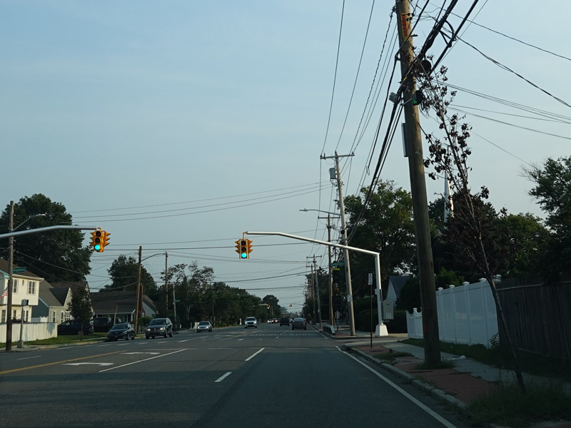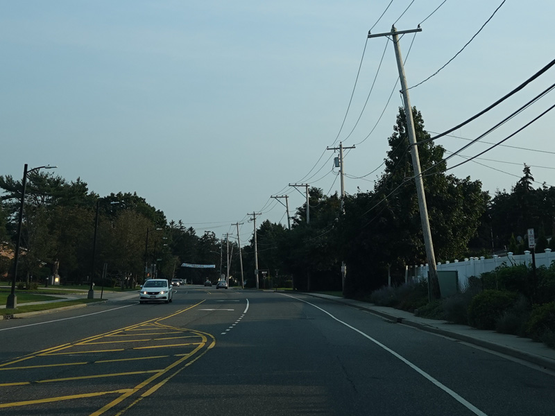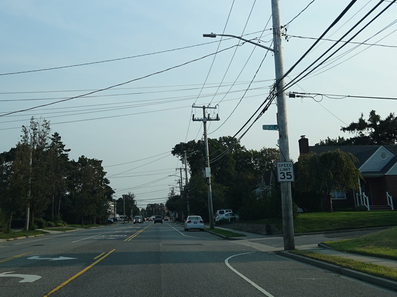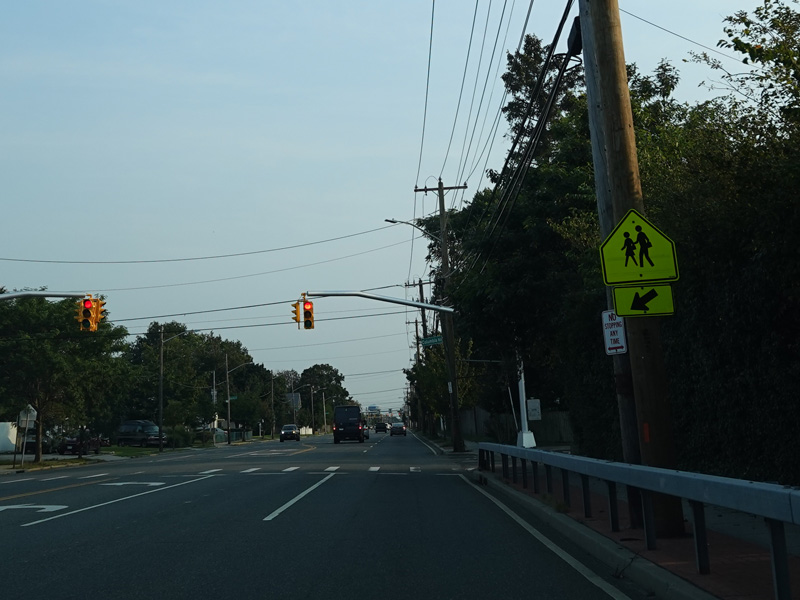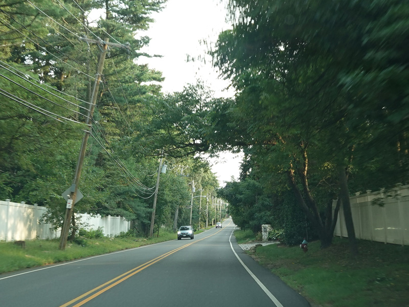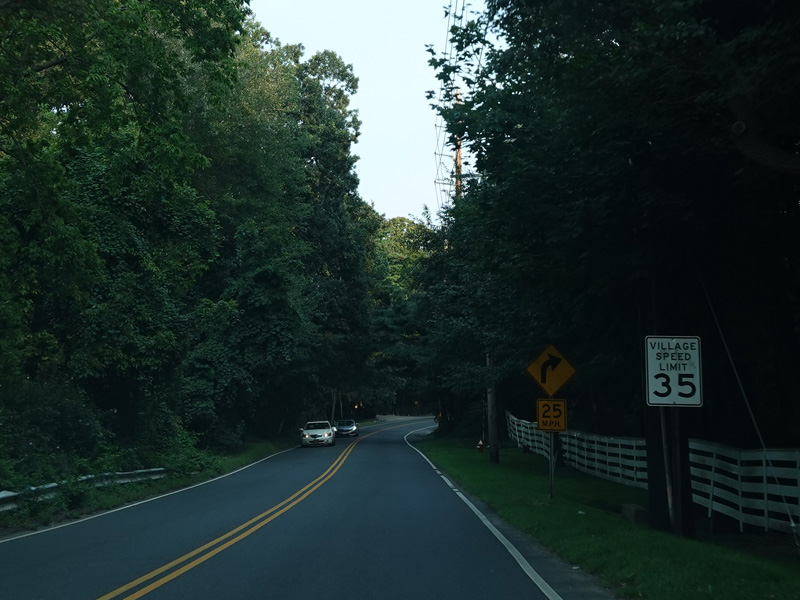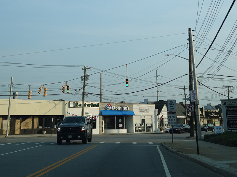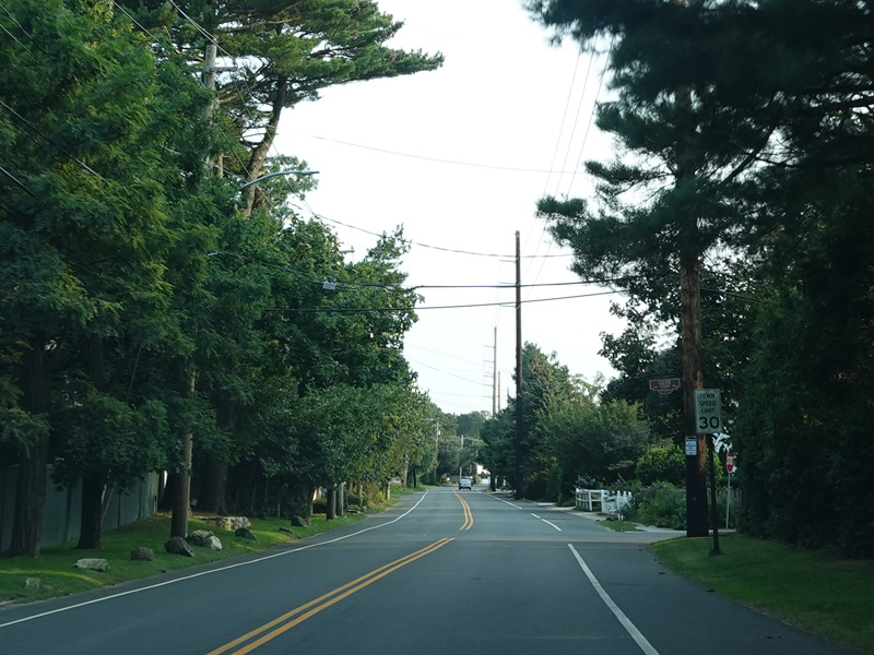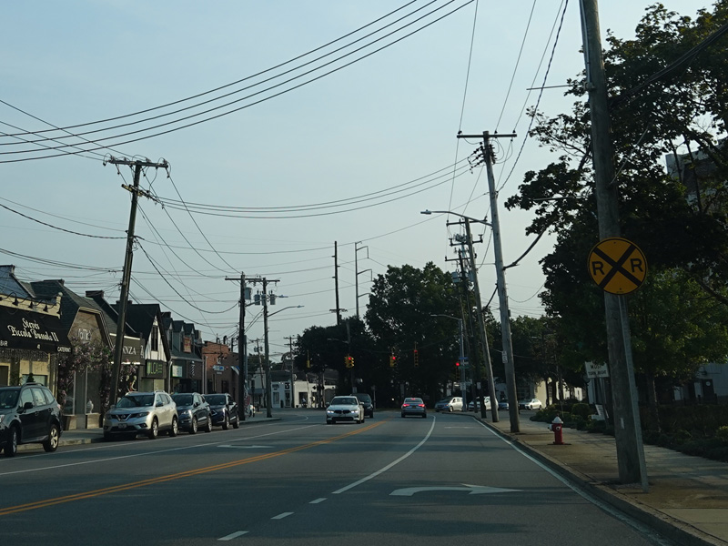 Jackson Avenue runs south through Syosset. There are traffic lights at Cold Spring Road and Underhill Boulevard, followed by a grade crossing at the Huntington Branch of the Long Island Rail Road.