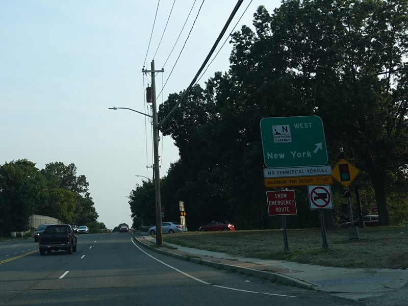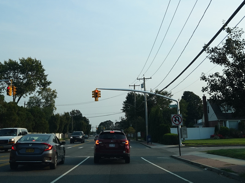 Jackson Avenue ends at a traffic light at Jericho Turnpike (NY 25). Turn left to go east or right to go west. Continue straight ahead onto South Oyster Bay Road to stay on CR 9.