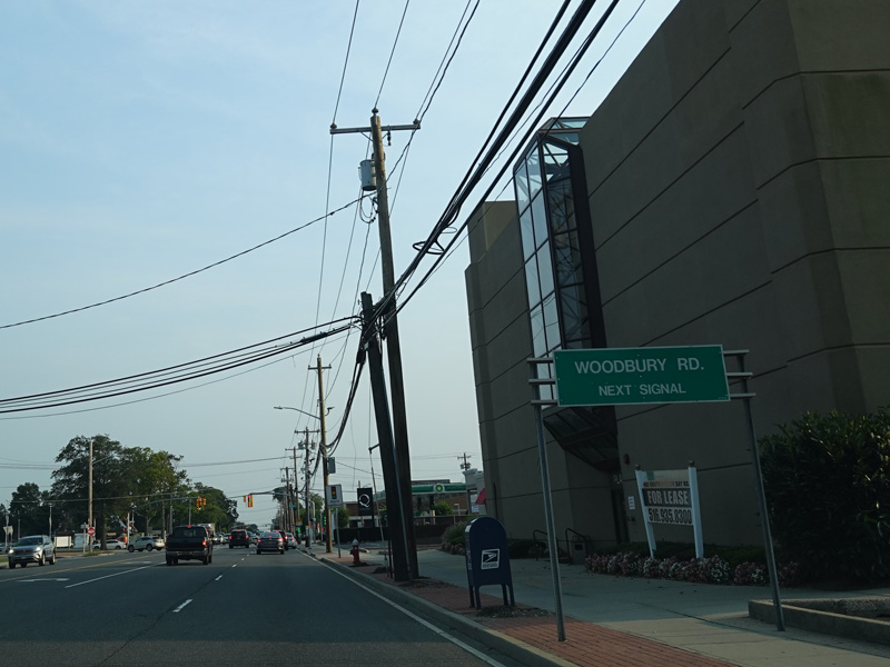 There is a traffic light at Woodbury Road (CR 12). Turn left to go east or right to go west.