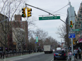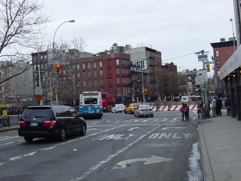 Allen Street ends here at Houston Street. Turn left to go west or turn right to go east. 1 Avenue begins straight ahead.