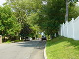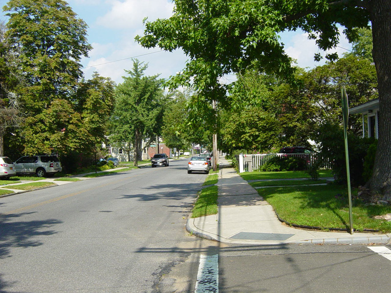 Amboy Road begins at a dead end by the Arthur Kill and runs east through Tottenville as a two-lane undivided road.