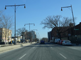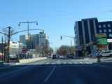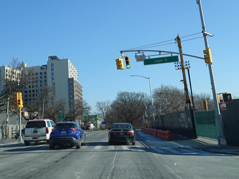 Skipping a substantial distance to the east, there is a traffic light at Logan Street.