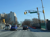Atlantic Avenue begins at the Brooklyn-Queens Expressway (I-278) near the East River and runs east through Brooklyn as a four-lane undivided road. There are oversized street name signs at Henry Street, Clinton Street, Court Street, Boerum Place/Brooklyn Bridge Boulevard, 3 Avenue, and 4 Avenue.
