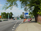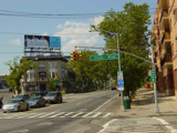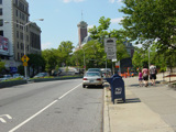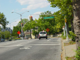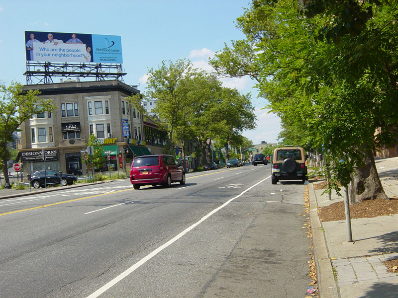 Near the northern terminus, Bay Street has a divider. It ends at the terminal of the Staten Island Ferry in St. George. Turn right for the ferry terminal. Bear left for Richmond Terrace.
