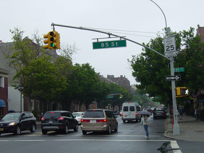 The cross streets in the area of Brooklyn are numbered, beginning with 85 Street and descending to 79 Street.