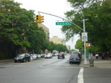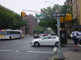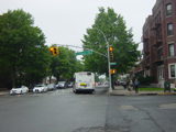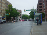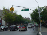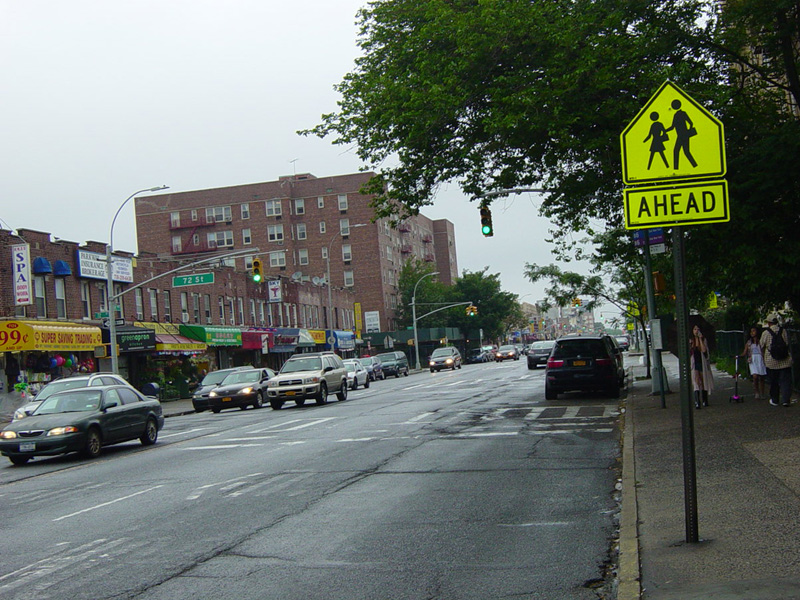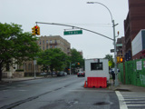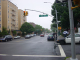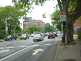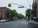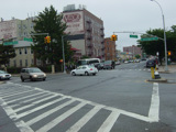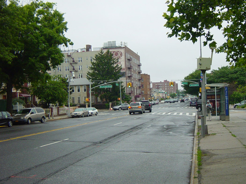 Bay Parkway runs northeast through Brooklyn. There are traffic lights at Cropsey Avenue, Bath Avenue, and Benson Avenue.