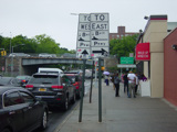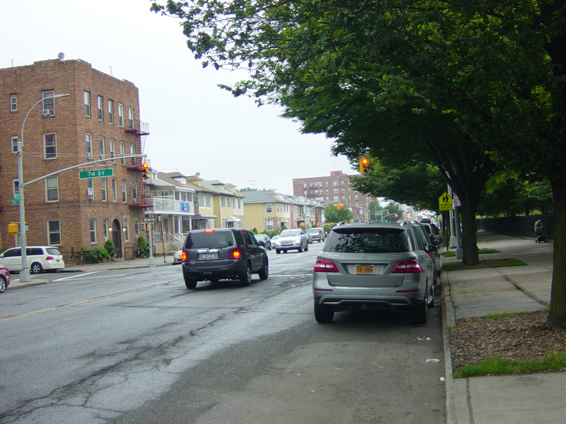 Bay Parkway begins at a dead end at the water in Brooklyn. There is parking in the center for the first block.