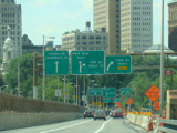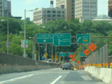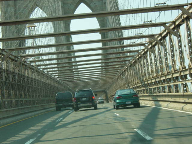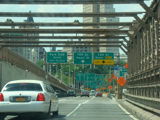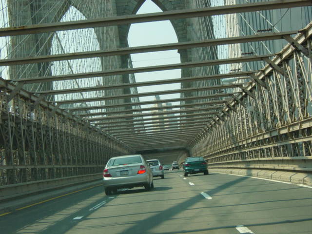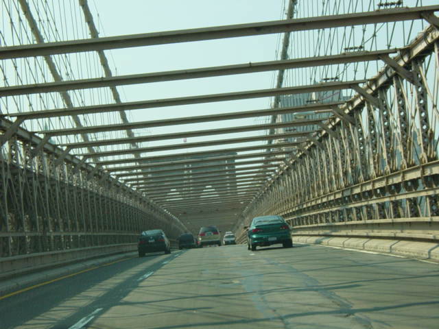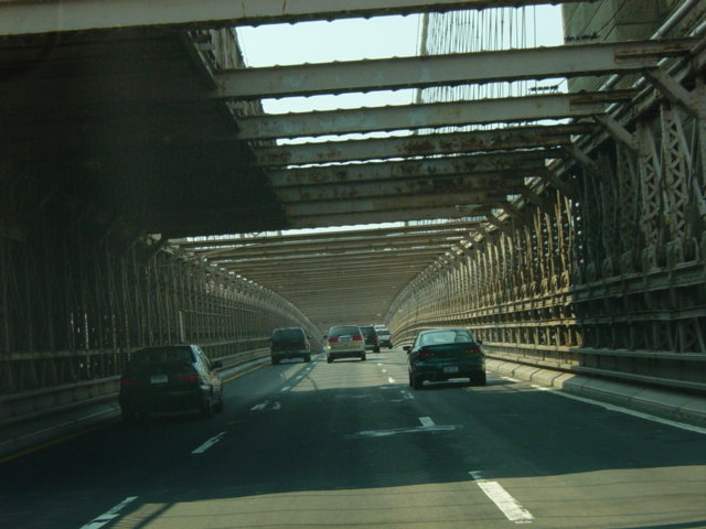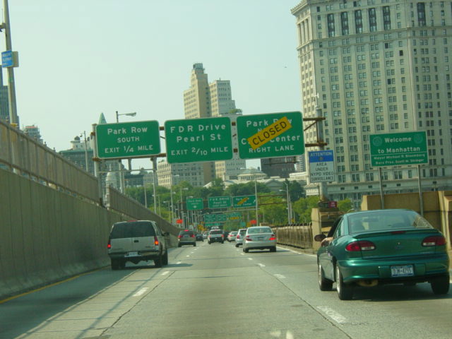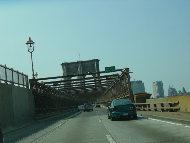 These pictures show the Brooklyn Bridge as it appeared in 2007. In the years since, the left lane has been converted into a bike lane, and all of the signs have been replaced.