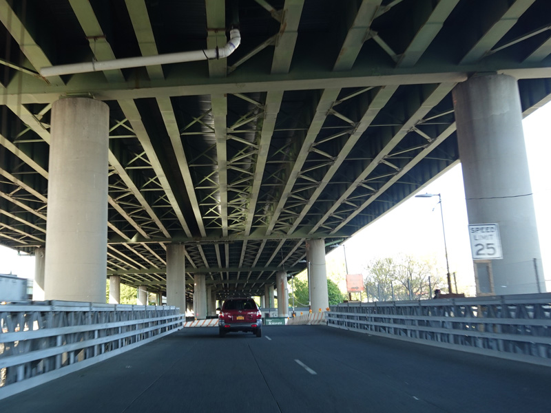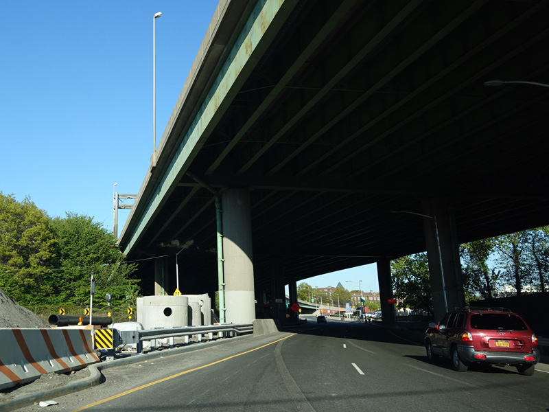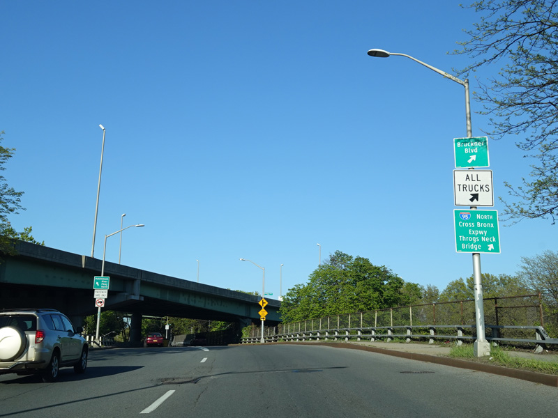 The roadway splits. Bear right for the Whitestone Bridge (I-678) or left to stay on Bruckner Boulevard.