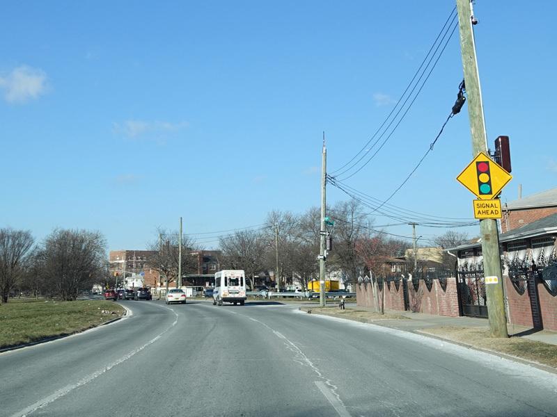 Welcome to Brooklyn! North Conduit Avenue and South Conduit Avenue change names to become Conduit Boulevard upon entering the borough. There is no signage for the borough line. There are traffic lights with oversized street name signs at Pitkin Avenue, Glenmore Avenue, and Liberty Avenue.
