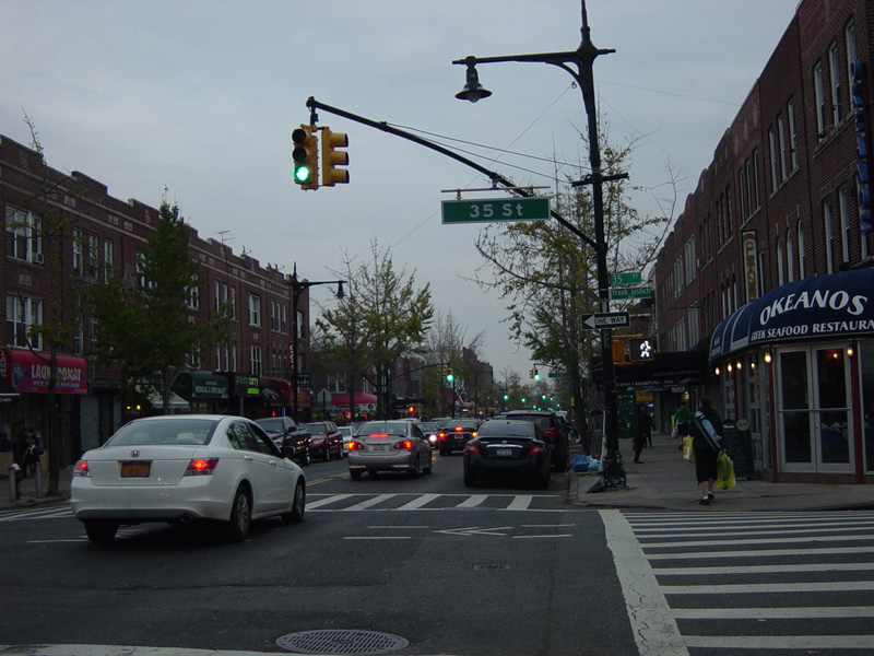 There are a substantial number of shops and restaurants along Ditmars Boulevard in this area. There are oversized street name signs at 33 Street, 35 Street, 36 Street, 37 Street, 38 Street, and Steinway Street.