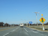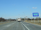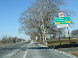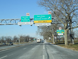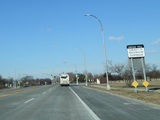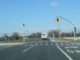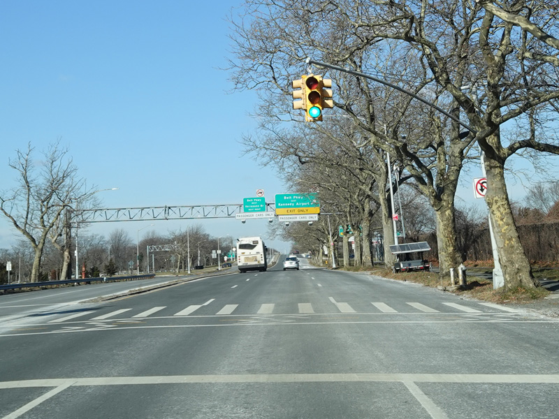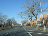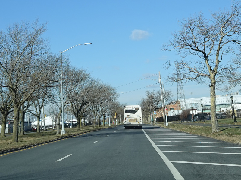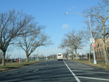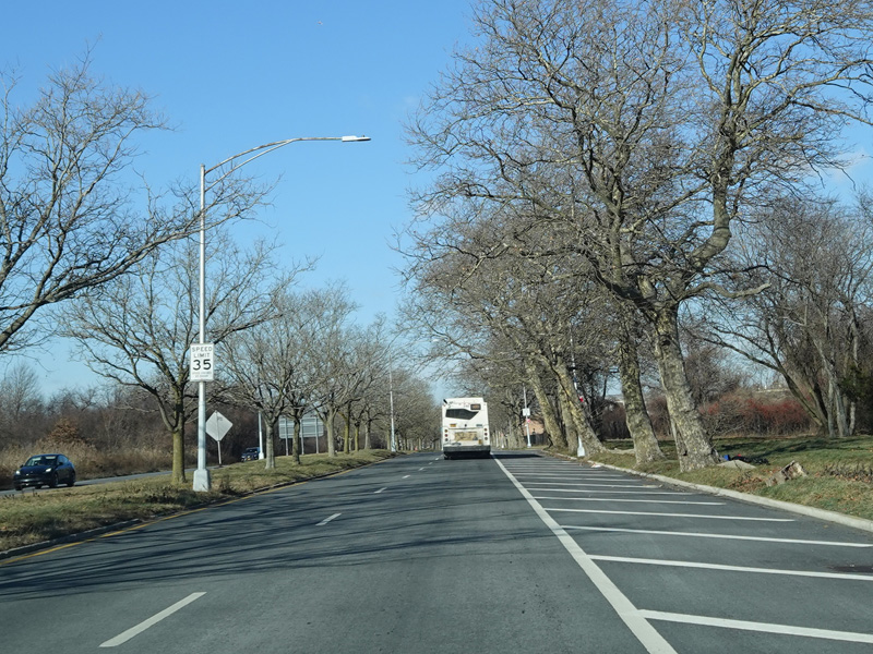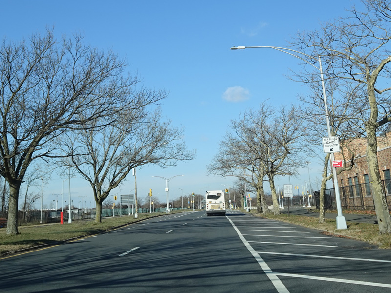 Flatbush Avenue begins at the Marine Parkway Bridge and runs north through Floyd Bennett Field as a four-lane divided road.