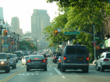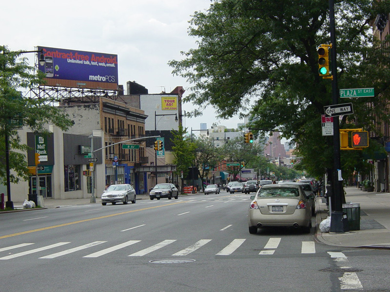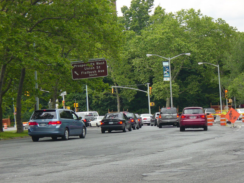 Skipping a substantial distance to the north, there is a traffic circle at Grand Army Plaza. There is an exit on the right for Vanderbilt Avenue. Continue around the circle for Prospect Park West and Union Street.